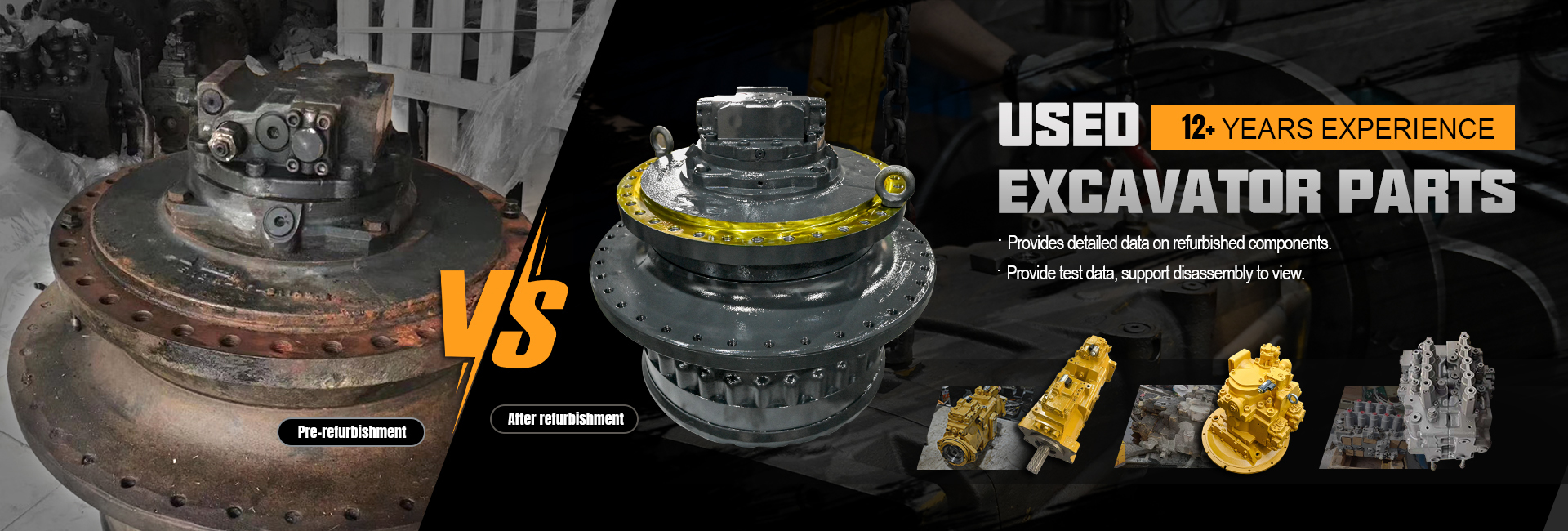 Motore e parti meccaniche: assemblaggi di motori diesel, cuscinetti a anello girevole e ingranaggi planetari.